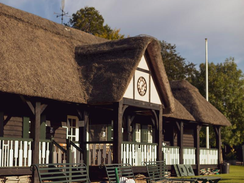 The mock-Tudor thatched pavilion, designed by architect Nicky Johnston, features a distinctive facade, players’ balconies and cricket bat balusters. It was officially opened on Sunday 3rd May 1992 for the first game on the new ground between two local villages that border the Estate – Ibstone CC v Fingest CC.