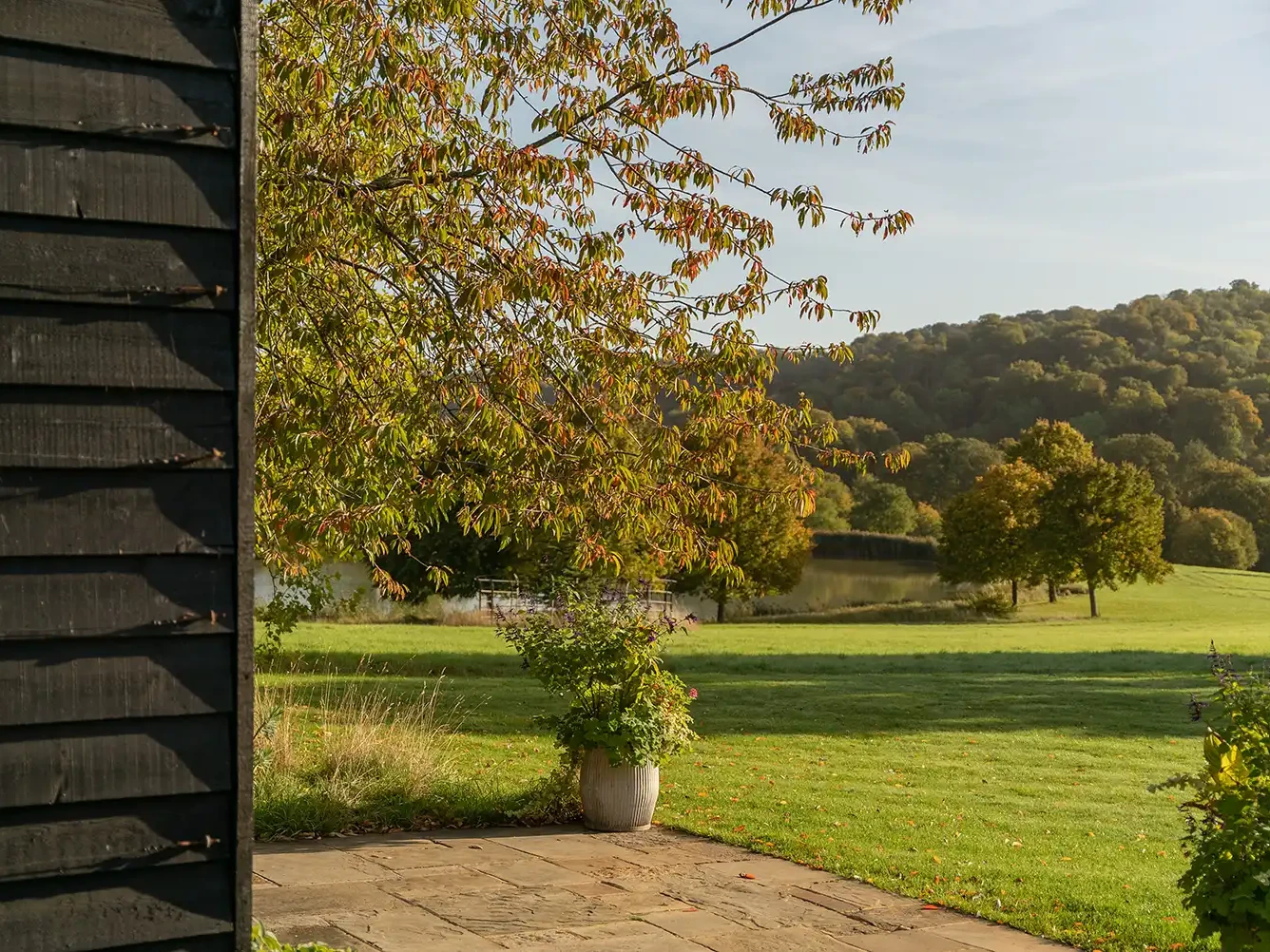 With its rustic charm, Home Farm Barn combines the old-world character of a traditional barn with the cosiness of a welcoming home. Inside, exposed wooden beams stretch across the vaulted ceiling, whilst soft lighting creates a warm and inviting atmosphere. Large windows welcome in natural light, looking out over the lake to Island Pavilion, Deer Park, Opera Pavilion and the undulating tree-scaped countryside beyond.